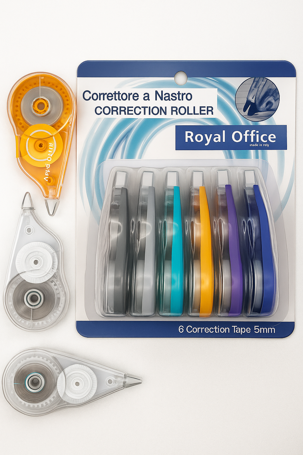 Corrige de forma rápida y precisa con esta práctica cinta correctora de 5 mm de ancho. Ideal para uso escolar, de oficina o personal, este paquete incluye 6 unidades que garantizan una larga duración y rendimiento constante.
