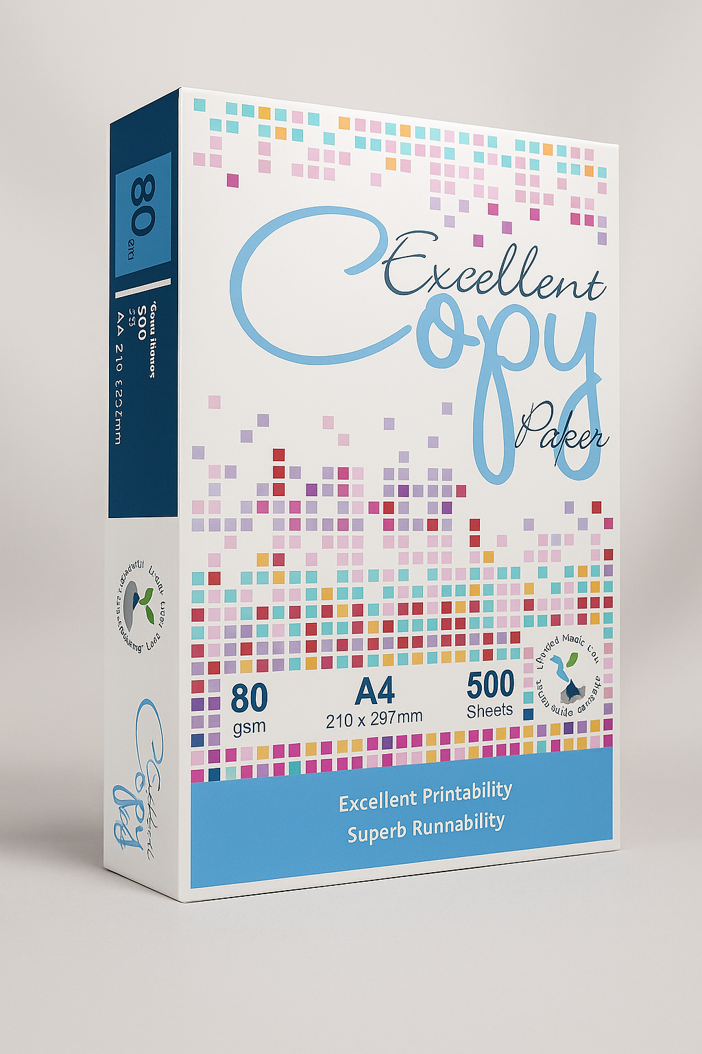 Papel para fotocopiadora tamaño A4 Excellent Copy. Contiene 500 hojas con un gramaje de 80 g/m², perfecto para impresiones y copias de alta calidad en oficinas y hogares.